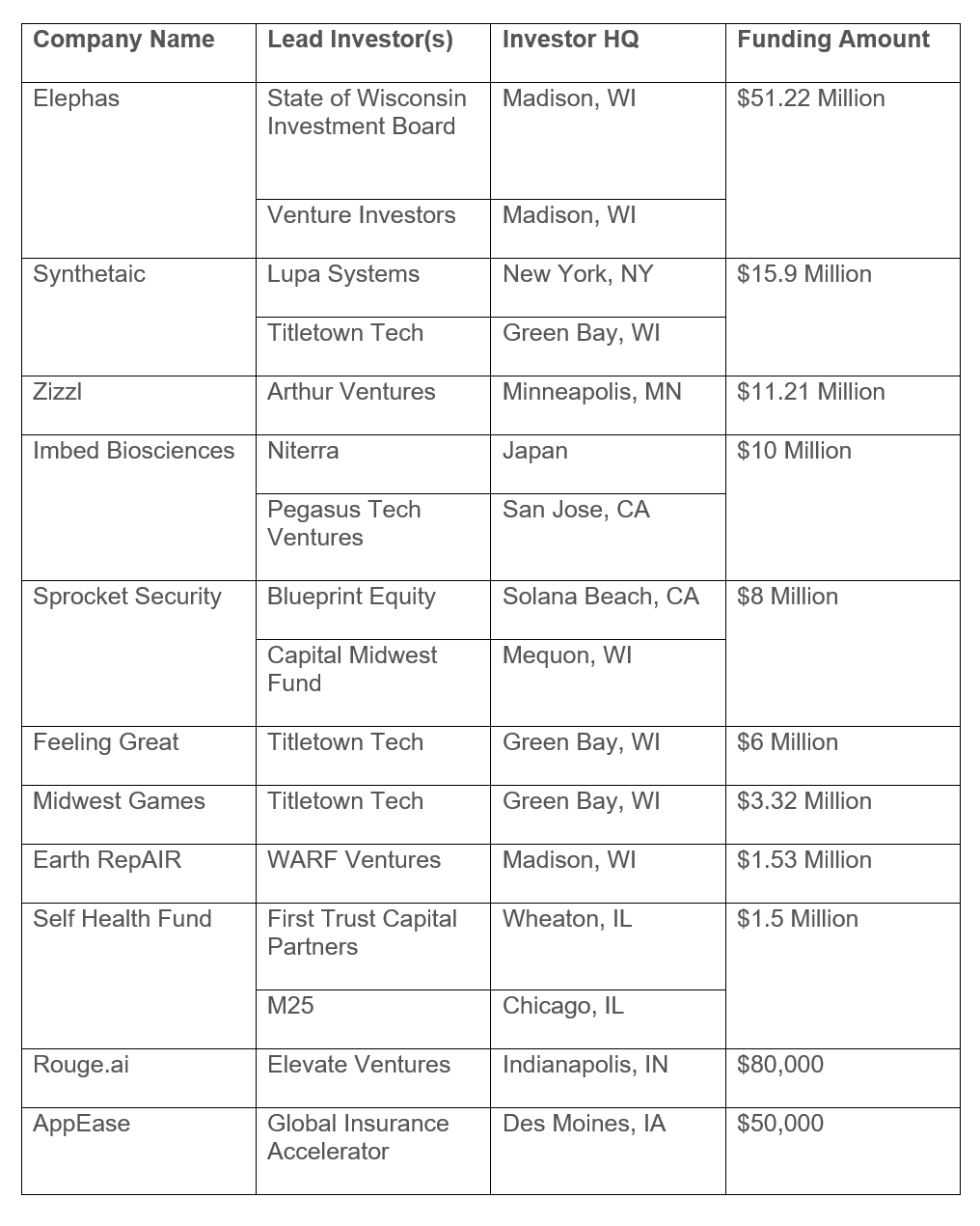 Wisconsin investors led eight deals, resulting in $86.72 million invested in companies headquartered in the state.